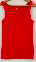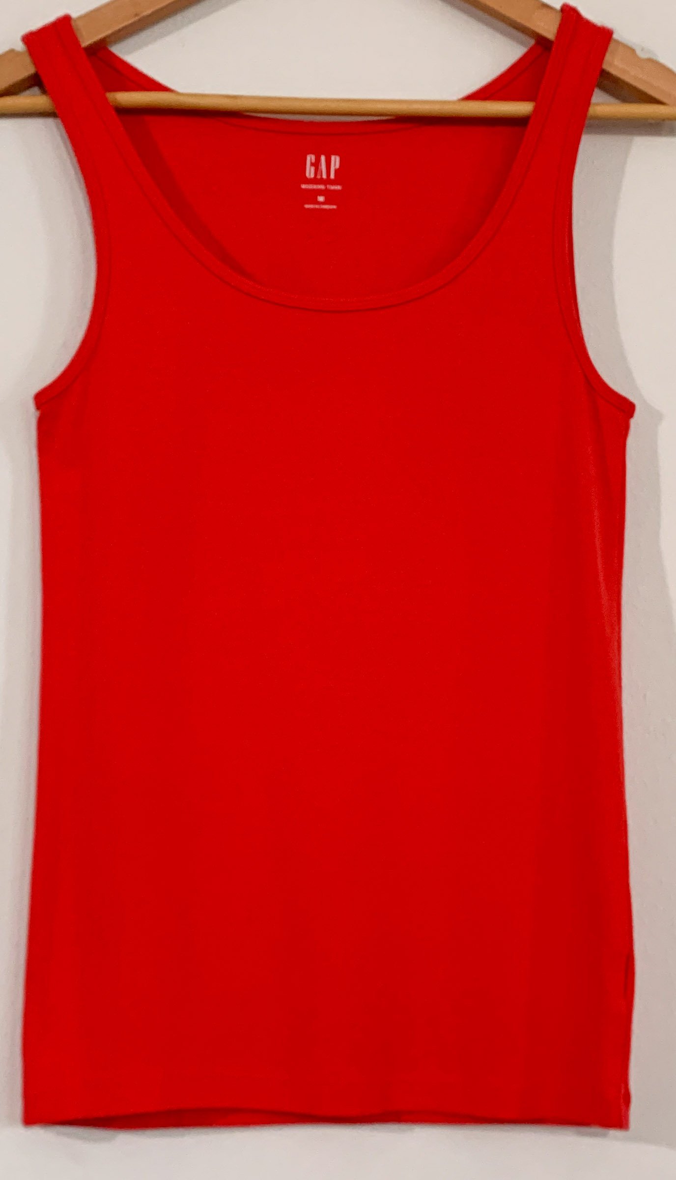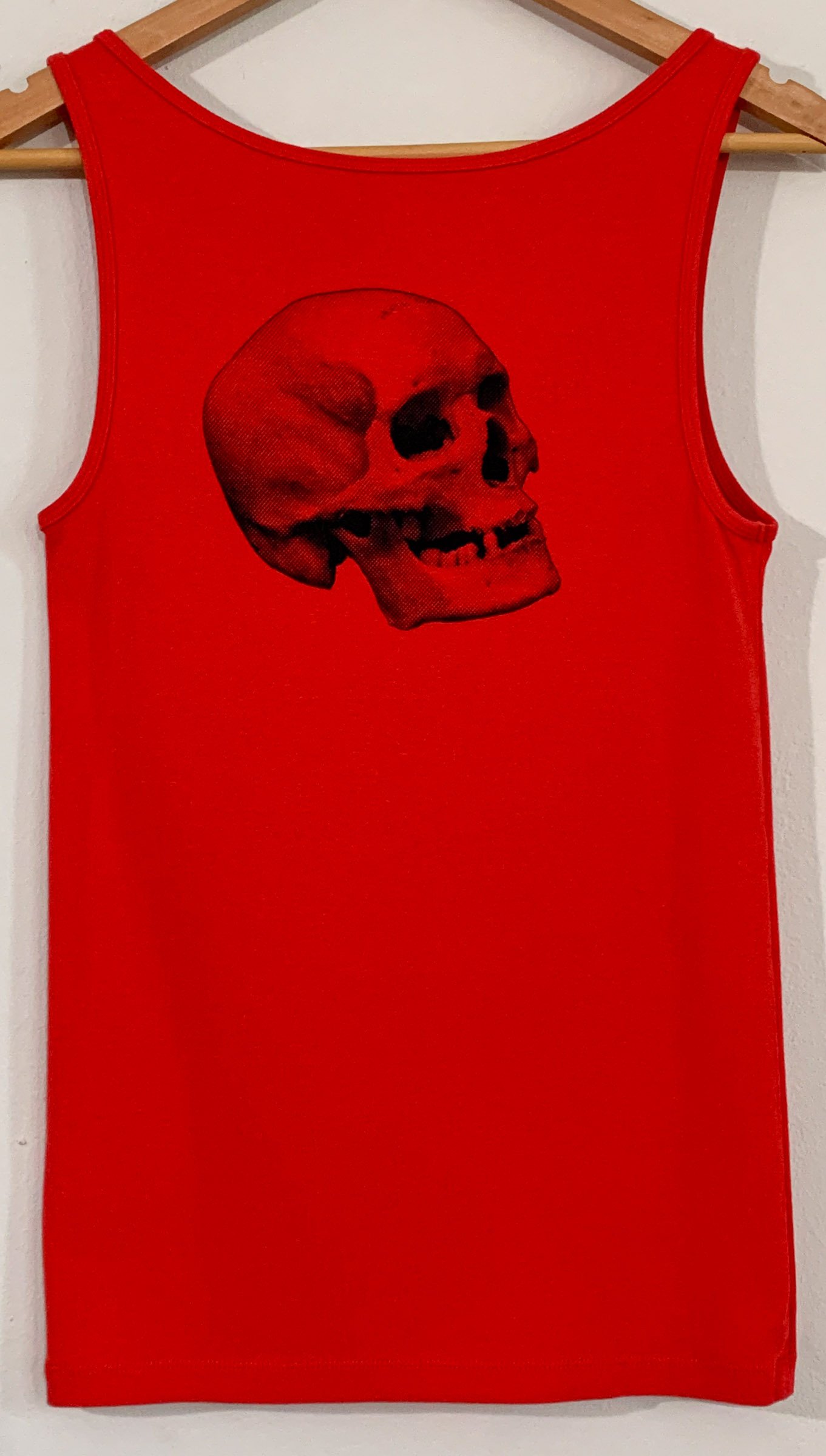 Red orange comfy GAP “Modern Tank”, given a new life with a screenprinted skull on the back.